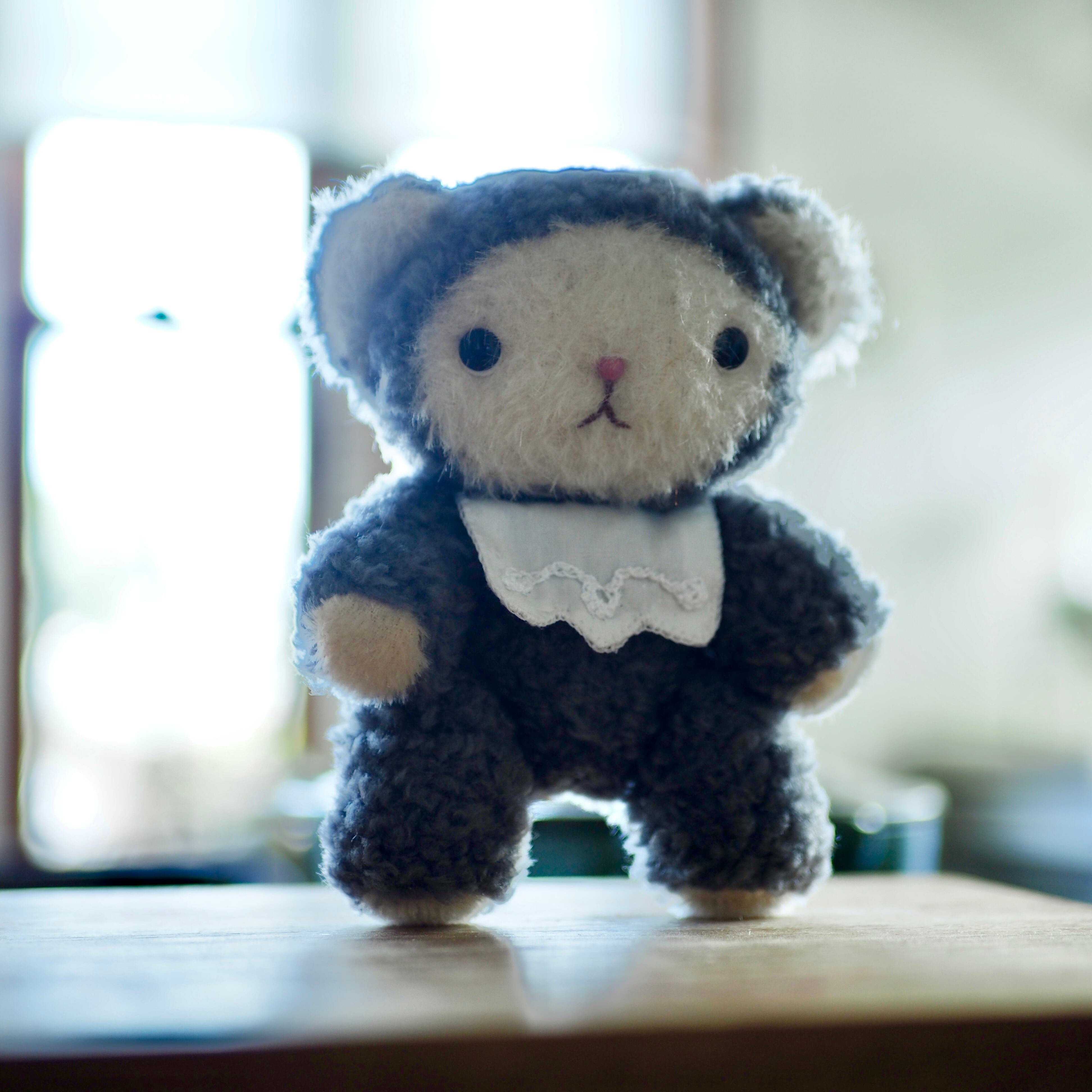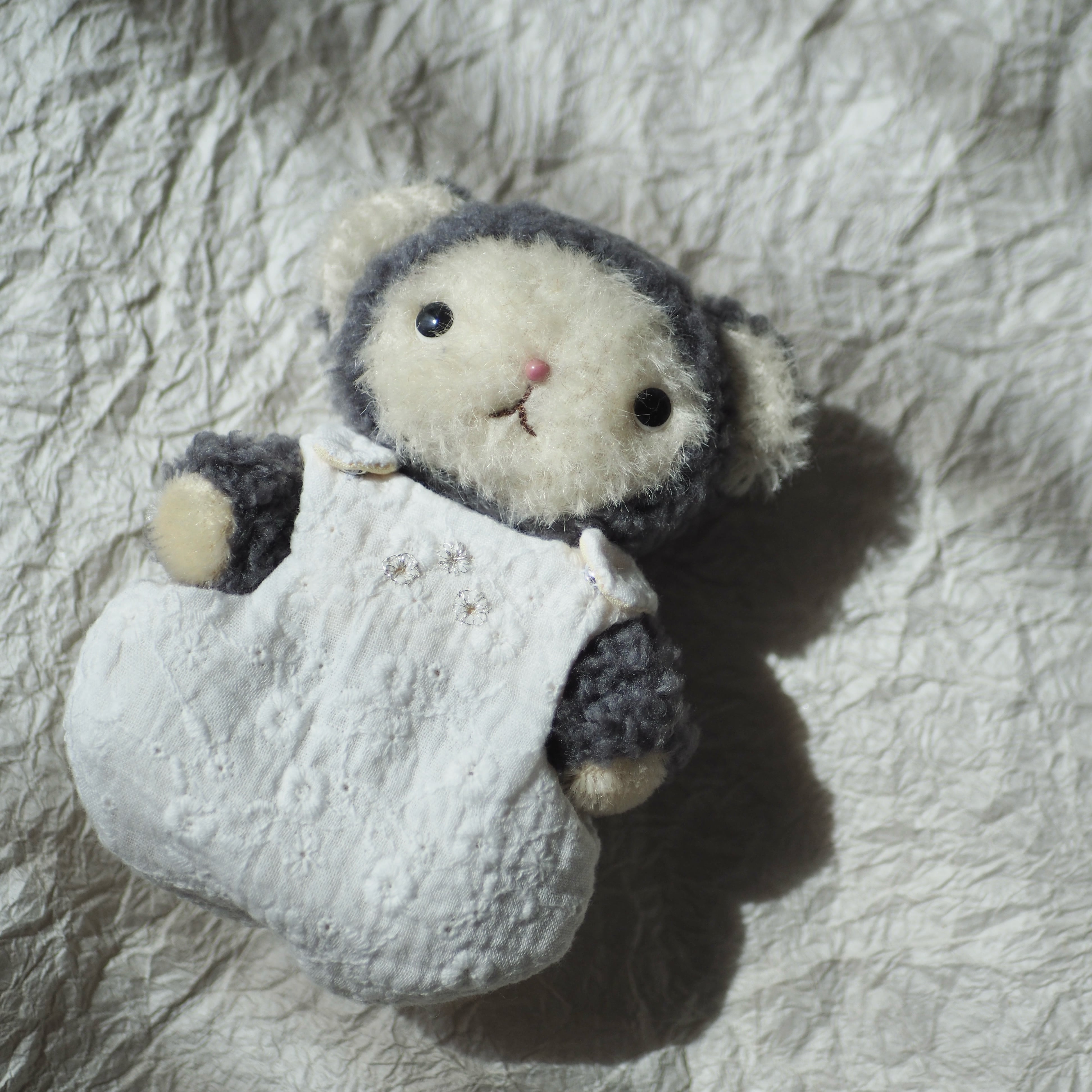 あかちゃんぽろくん(おはぎ)です。 首と腕と足はジョイントを使用。 スタイとスリーパーは脱着可能。 たて約13cm
