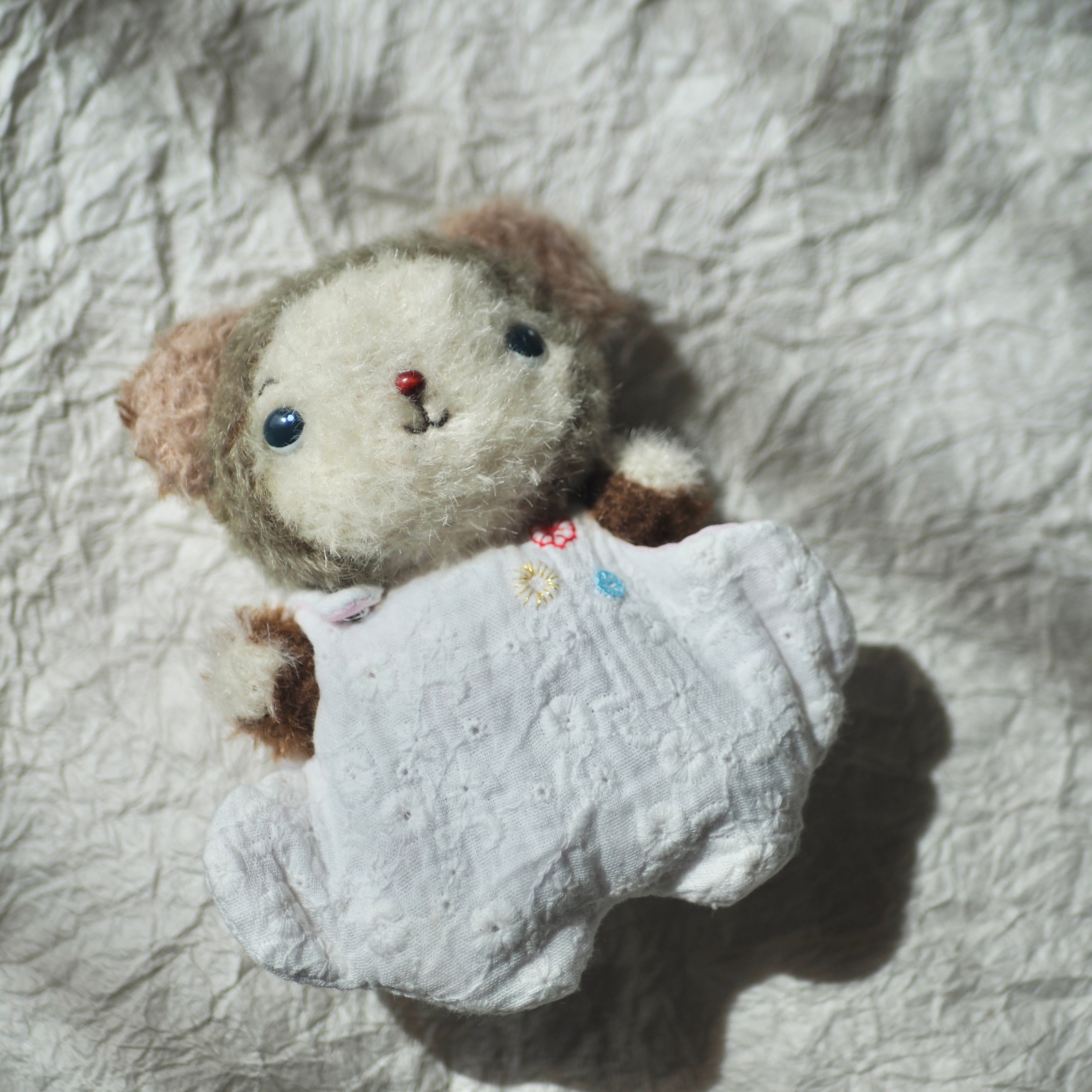 あかちゃんぽろくん(どんぐり)です。 首と腕と足はジョイントを使用。 スタイとスリーパーは脱着可能。 たて約13cm