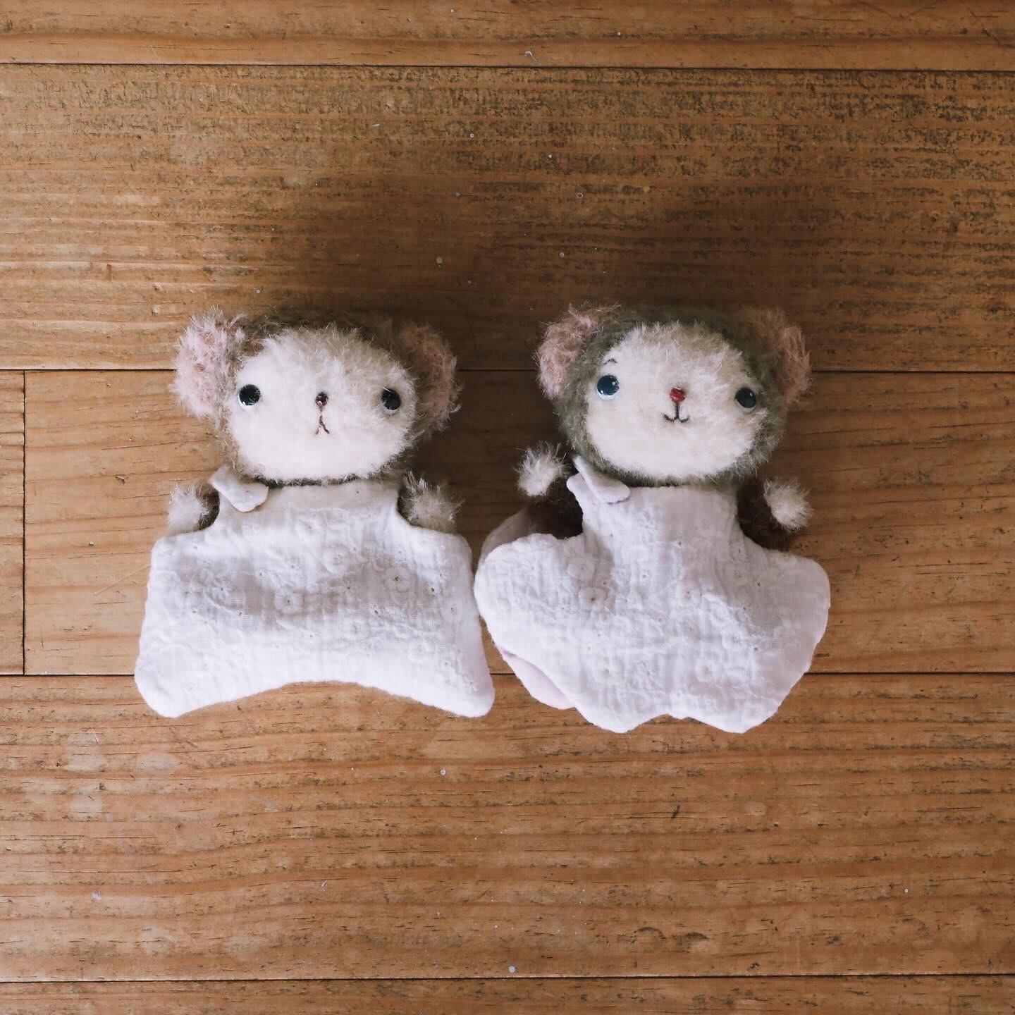 あかちゃんぽろくん(くるみ)です。 首と腕と足はジョイントを使用。 スタイとスリーパーは脱着可能。 たて約13cm