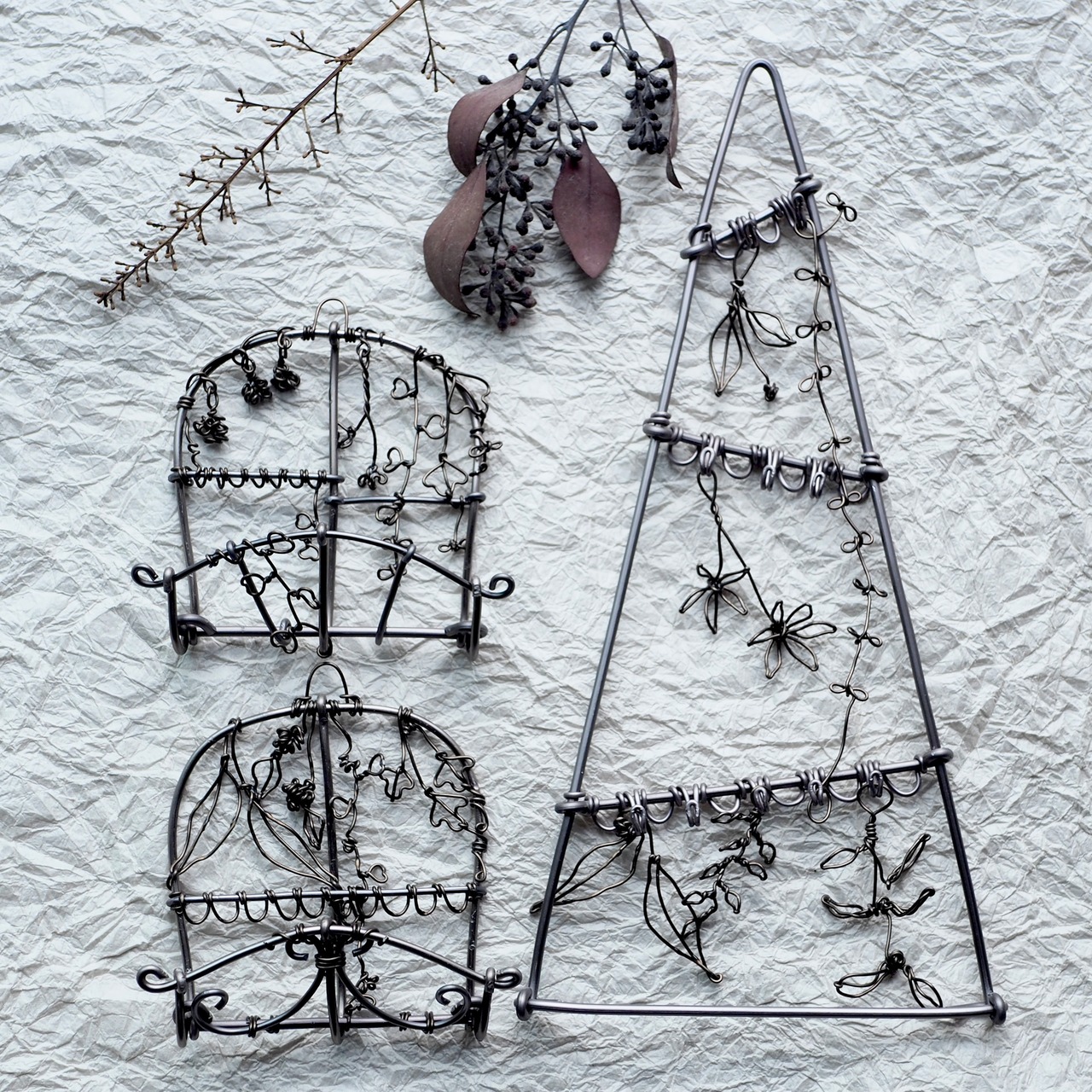 ひとつひとつ好きなものをワイヤーで曲げてお作りしています。手作りなので同じものはありません。